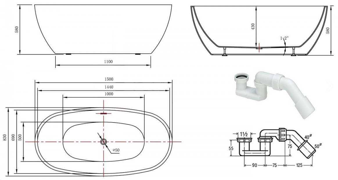 - Waga wanny około 50kg