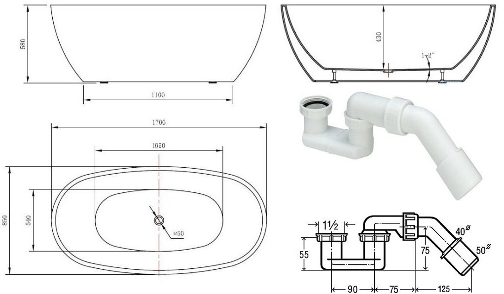 - Waga wanny około 50kg